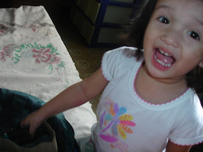 Smiling at me as she's getting my wallet from my bag. You cute sneaky little devil. :P